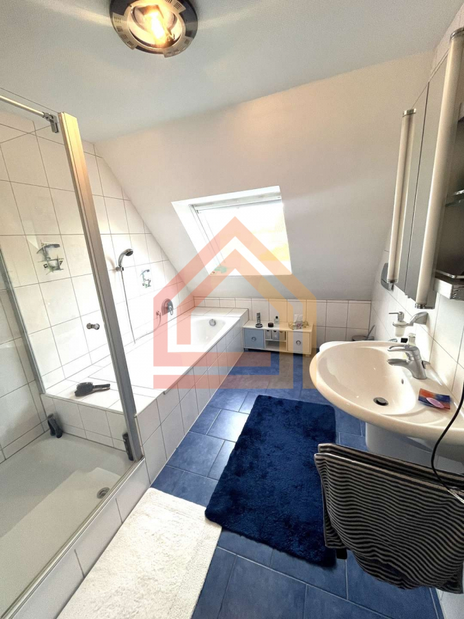 - Zeitloses Tageslichtbad mit Badewanne und Dusche